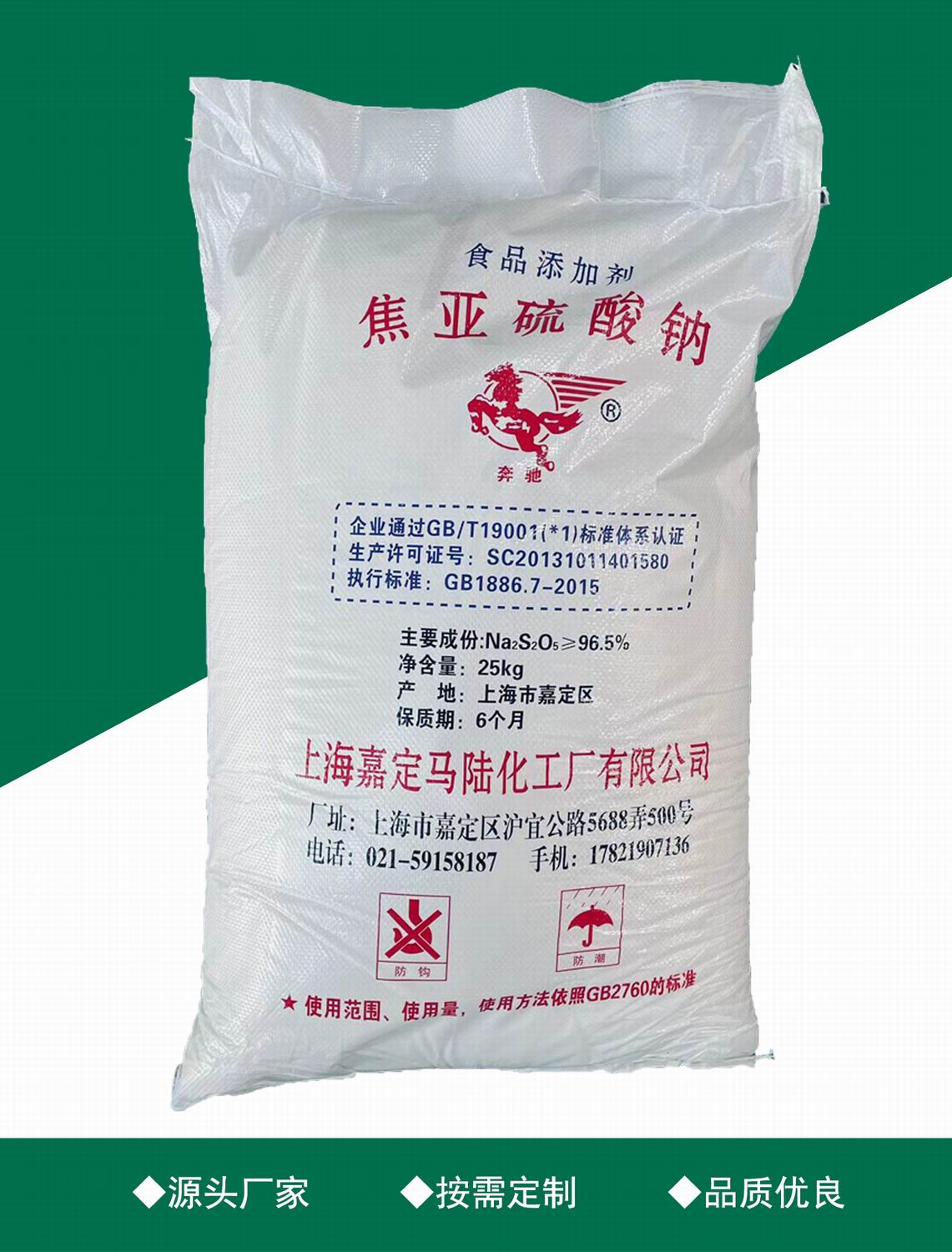 上海嘉定馬陸化工廠有限公司主營生產(chǎn),焦亞硫酸鈉、亞硫酸氫鈉等產(chǎn)品生產(chǎn),幾十年的專注焦亞硫酸鈉研發(fā)生產(chǎn),公司擁有完整、科學(xué)的質(zhì)量管理體系,為確保公司產(chǎn)品能夠長期立足于市場,增強(qiáng)客戶的粘性,可滿足客戶的非標(biāo)定制需求,可提供產(chǎn)品各個用途的解決方案,公司重信譽(yù)、守合同、保質(zhì)量、快速發(fā)貨以,我們擁有專業(yè)的售前售中、售后團(tuán)隊(duì)共同協(xié)作,確保用戶采購中的每個環(huán)節(jié)都能有滿意的體驗(yàn)度。